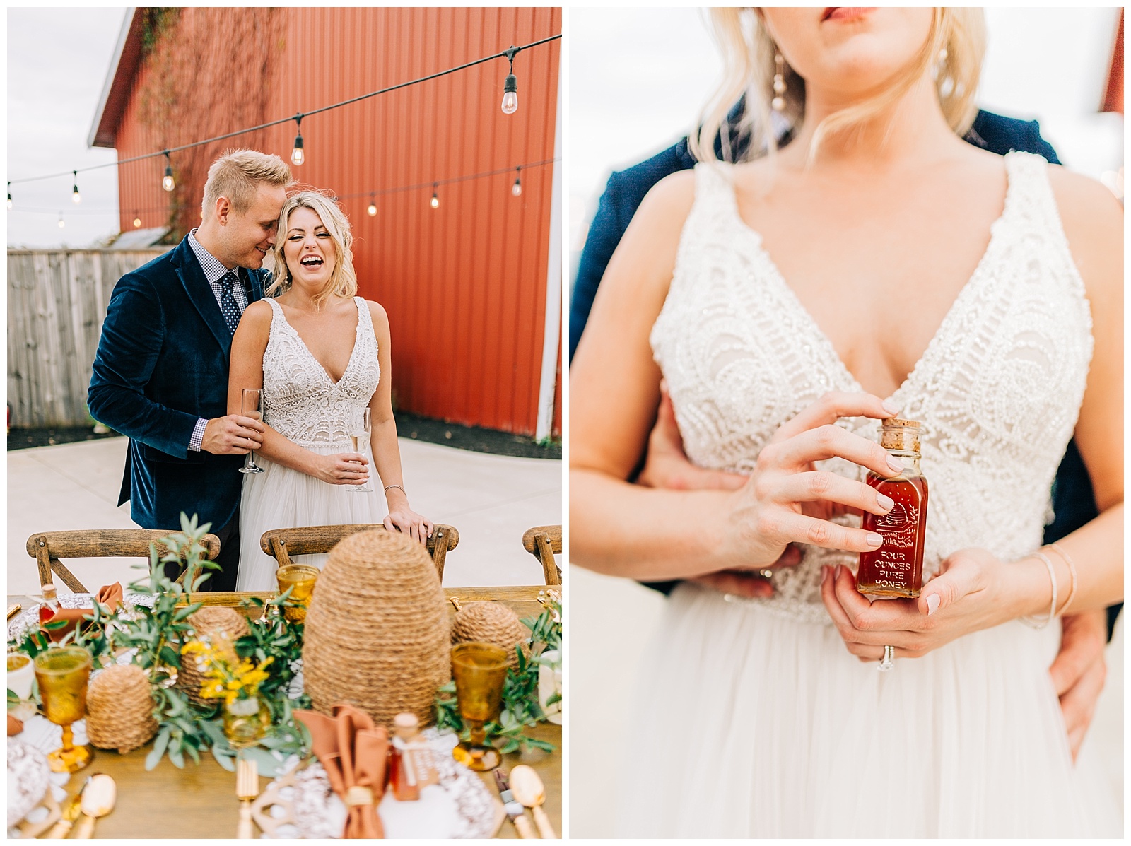 The Honey Farm! Oh I could write a book on how wonderful and how amazing the venue and owner is! Jennifer thought of every little detail for this fall styled shoot. From gold bumble bee hair pins to homemade pie, this rustic chic styled wedding was perfection! I was honored to be asked to take part in shooting for the day, and it was a blast to get to know the other creatives and photographers that were there for the event.